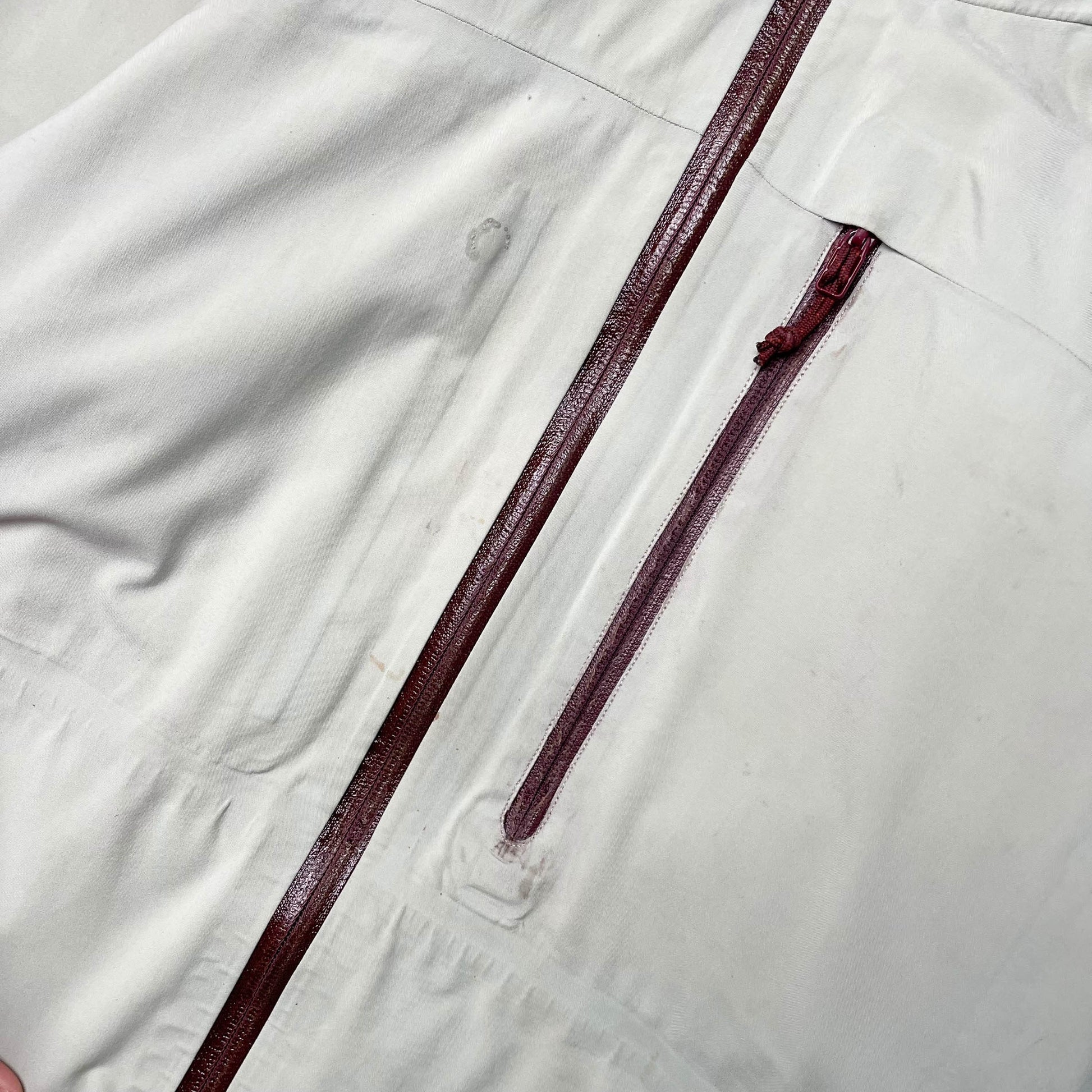 This is a 20+ year-old technical garment. While it remains functional, the age-related wear means it is better suited as a collectible or fashion piece rather than for demanding outdoor use. If worn, it should be treated with care and not relied upon for critical weather protection in extreme conditions.